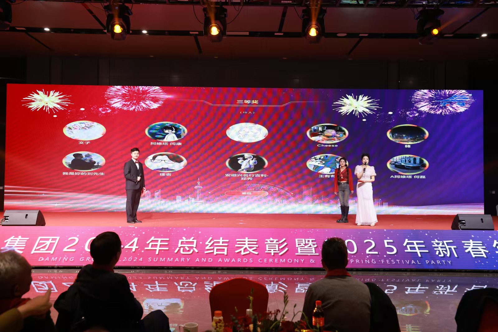 大名集團2025年新春年會在主持人的開場秀中拉開了帷幕!員工們自編自演的節目精彩紛呈,從歌舞串燒到小品表演,再到美聲演唱,每一個節目都充滿了創意與驚喜,展現了大名人多才多藝的一面。這些表演不僅增進了員工之間的情感交流,也讓年會的現場氣氛達到了高潮。