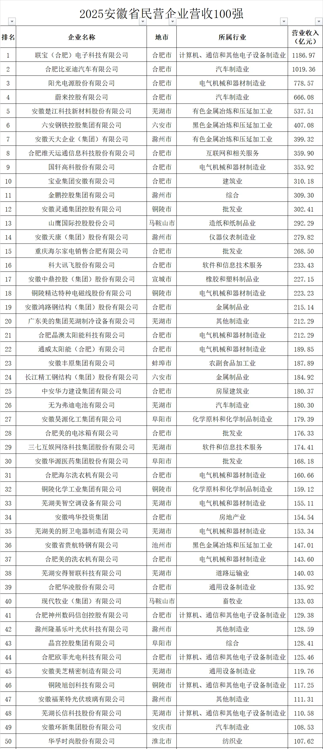據了解,《2025安徽省民營企業百強分析報告》是在調研了905家營收3億元以上的民營企業基礎上,依據企業2024年度主要經濟指標,經企業申報、數據審核、部門聯核等形成。調研顯示,2025安徽省民營企業營業收入百強入圍門檻增至61.70億元,較上年增加0.09億元,增長0.15%。