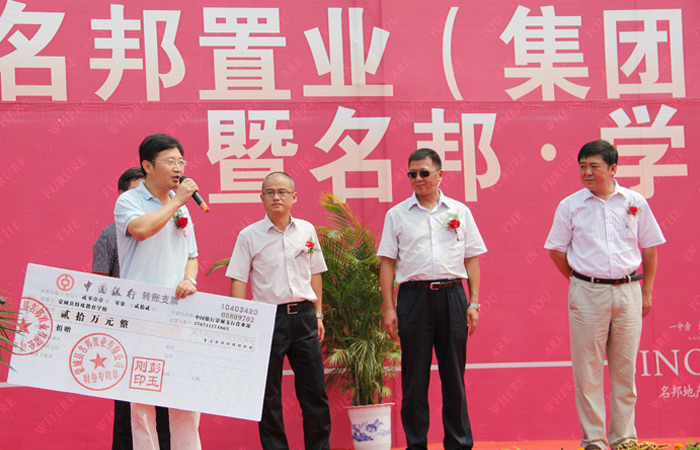 ·2023年1月11日,臨泉縣名邦物業向單橋鄉鎮企業捐贈扶貧款2000元。 ·2023年2月1日,名邦物業-臨泉名邦新都會以實際行動向臨泉縣邢塘街道金莊社區扶貧獻愛心。 ·2023年9月1日,名邦物業-肥西中央公館向肥西縣慈善協會捐贈愛心款。 ·2023年9月5日,名邦物業-西城國際向縣慈善協會捐贈愛心款。